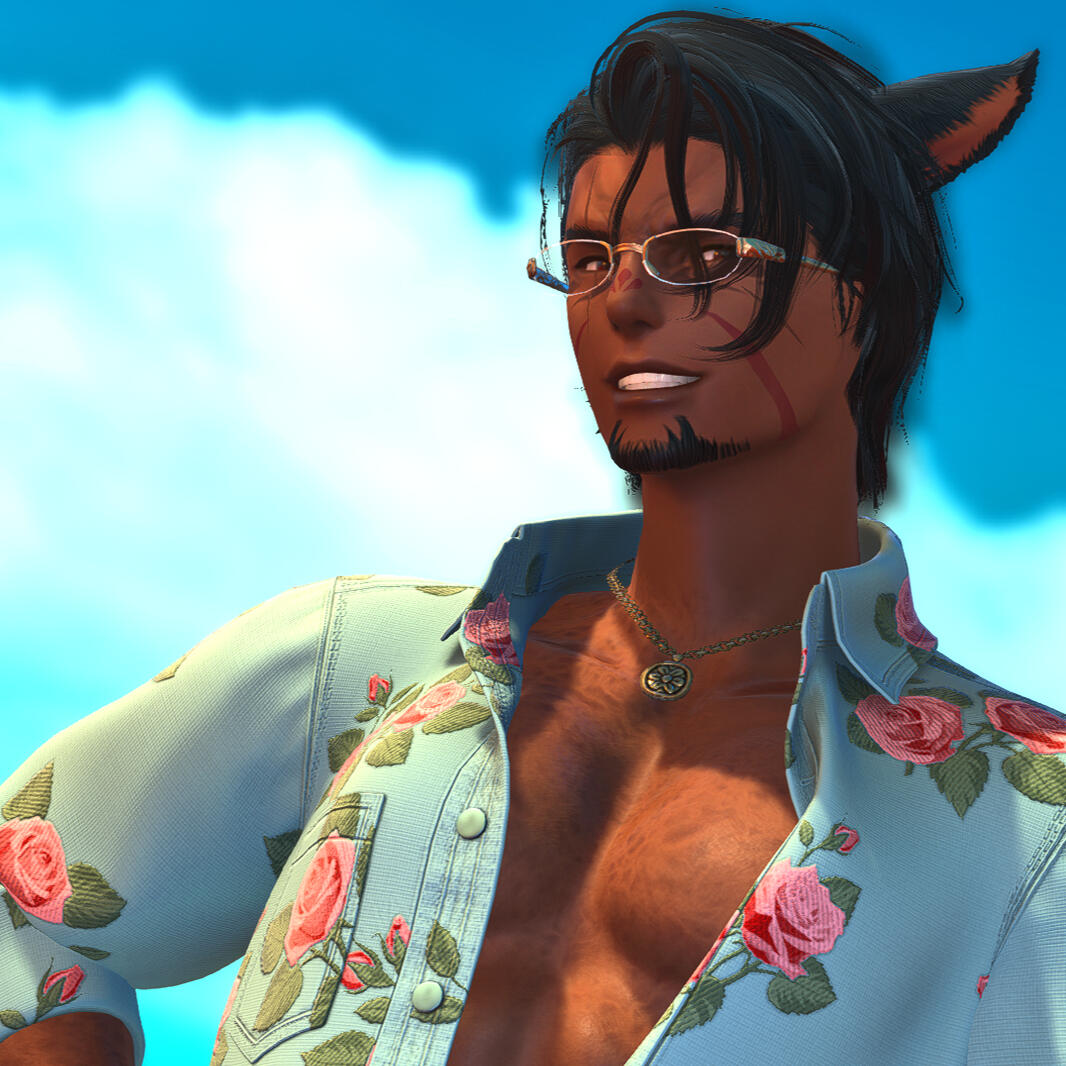 A scorching heat surges as you see Lux and three others fleeing through a ruined jungle and village, with flaming skies and encroaching Blasphemies. [#3] DT spoilers.The desert air roars with aircraft and gunfire, punctuated by a panicked Au Ra's pounding heartbeat. A massive, scaled Xaela, his bodyguard and friend, stands nearby. Fueled by adrenaline, Luxuria swallows his fear, rises, and joins the grim fight with his rarely-used magic .the echo [future vision]. His superstitions make oracles and their concept deeply unsettling. Admitting to scrying and discussing any of these visions are likely to ward him away. [#1.] Luxuria and a fellow Xaela sit at an outdoor cafe table, an empty fruit plate beside them, speaking in Hingan to discuss a chemistry conundrum while other students mill about. [#2.] An older Luxuria stands alone in the center of a round auditorium. Earnestly, he speaks before a council. His tension is visible, matching the high stakes of this crucial, inaudible moment—his success uncertain. [#3.] TW Blood/Gore.